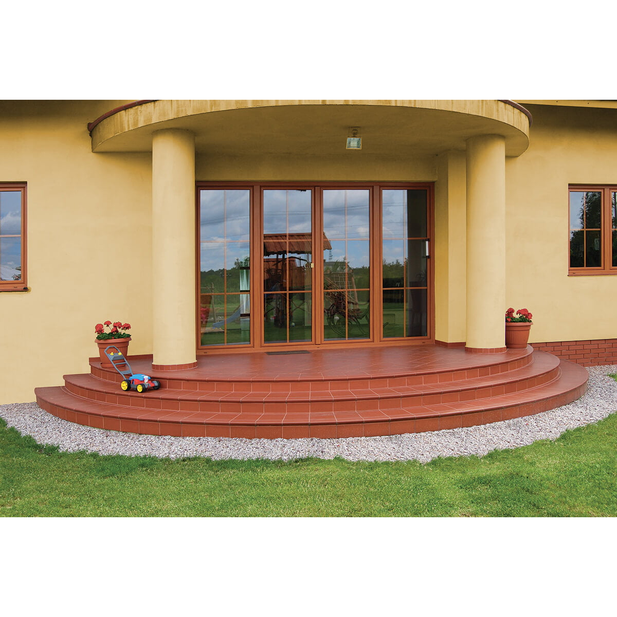 Натуральная клинкерная плитка, классического красного цвета отлично подойдёт для создания красивого крыльца в вашем доме.