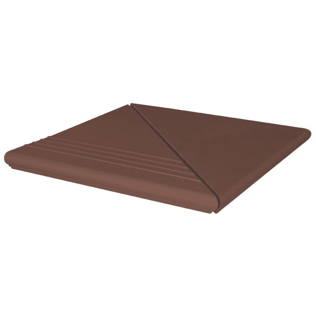 Ступень клинкерная коричневая угловая рифлёная, 330х330х14, KingKlinker